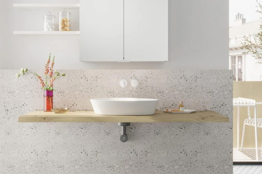 Der burgbad cleanFlow ist das perfekte Tool zur Realisierung komfortabler Konsolen-Waschtischanlagen. Farblich ist der aus hochwertigem, anthrazitfarbenem Kunststoff gefertigte Siphon auf die Innenräume unserer Waschtischunterschränke abgestimmt. Durch den hochliegenden Siphon und die geradlinige Führung der Rohre macht er aber auch unter offenen Konsolenlösungen eine gute Figur und lässt dort besonders viel Bewegungsspielraum. Damit bietet er sich auch für die Gestaltung minimalistischer und barrierefreier Konsolenlösungen an. Der Clou: Mit dem burgbad cleanFlow+ lassen sich nun erstmals auch Aufsatzwaschtische ohne Hahnlochbank und selbst dünnwandige Aufsatz-Waschtische und Sonderlösungen mit Schalen sicher stauen.